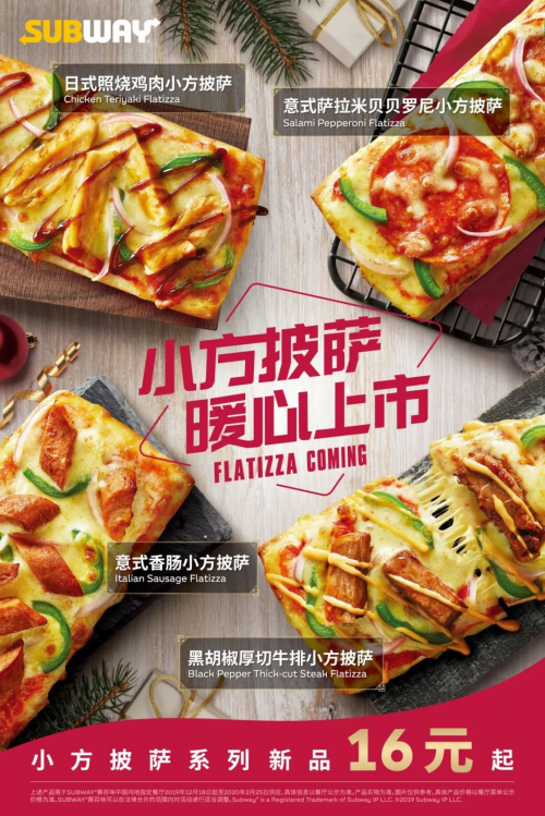更多赛百味体验可以通过Subway.com、赛百味中国官方微信及微博查看。上述产品限于SUBWAY®赛百味中国内地指定餐厅2019年12月18日起至2020年2月25日供应,具体信息以餐厅公示为准。产品以实物为准,图片仅供参考。具体产品价格以餐厅菜单公示价格为准。SUBWAY®赛百味可以在法律允许的范围内对活动进行适当调整。Subway® is a Registered Trademark of Subway IP LLC. ©2019 Subway IP LLC.