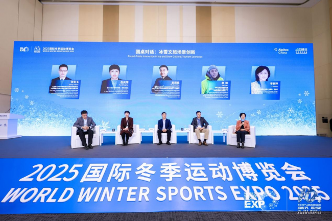 最后,在高峰对话环节,北京联合大学旅游规划与发展研究院副院长、中国旅游景区协会冰雪旅游专业委员会秘书长张宪玉作为主持人,同黑龙江省虎林市委常委、宣传部部长岳庆萍,中科院地理科学与资源研究所客座访问学者、北京千山雪业企业管理有限公司创始人与董事长吴观庭,双威力冰雪体育总经理、加拿大Ecosign设计所中国区代表、中国雪地摩托旅游推广人高晗,西藏旅游开发股份有限公司董事、总经理李新萍,围绕“冰雪文旅场景创新”这一极具前瞻性的主题,展开了深入且多元的讨论。