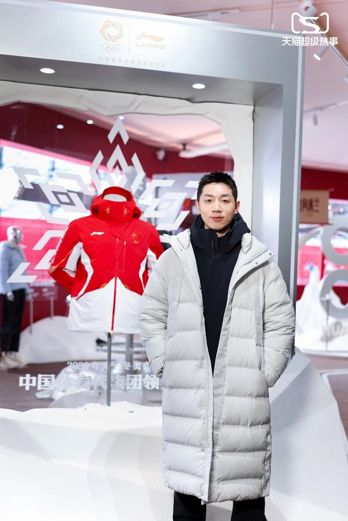 (奥运冠军许昕与米兰冬奥会中国体育代表团领奖服)