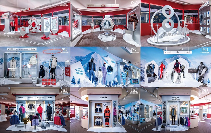 大秀之外,天猫在雪场核心区打造了 “天猫飞行空港”慢闪空间。这里不只有静态陈列,更是互动体验的舞台。华为 Mate80 系列展示了在云顶滑雪场拍摄的滑雪大片,李宁通过航天动态保暖科技展现实力,鸭鸭以直观对比呈现羽绒服在不同温度下的性能差异;美力城推出高科技鹅绒产品,UTO 则巧妙拆解内搭的实用设计;phenix 带来首款野雪主动救援装备,迪桑特专注展示高山滑雪专业装备……每个展位都是一个沉浸式的「体验装置」,等待雪友们亲自探索。
