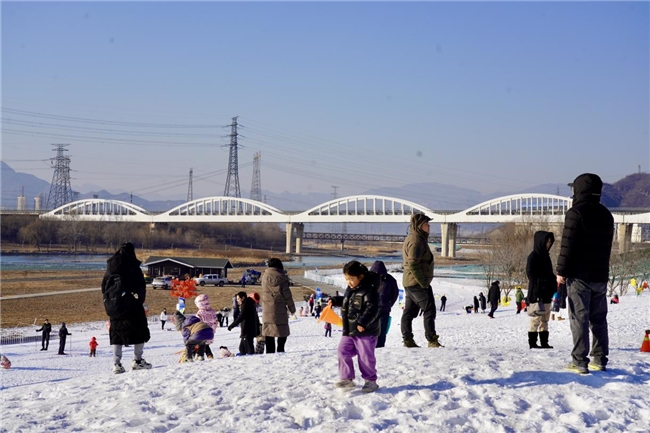 作为冬奥遗产活化利用的核心区域,石景山区始终以冬奥示范区建设为抓手,将“让冰雪运动进入寻常百姓家”的指示要求转化为具体实践。本次活动秉持“全民参与、趣味互动、安全有序”的原则,精心设置雪地保龄球、飞盘、雪地龙舟、雪域漂流、雪地挖宝、雪球大战六大冰雪打卡项目。雪地保龄球将传统运动与冰雪场地巧妙融合,参与者瞄准目标、奋力投掷,在精准竞技中感受别样乐趣;雪地飞盘轻松休闲、老少皆宜,大家在洁白雪地上舒展身姿、传递飞盘,尽享轻松愉悦的互动时光;雪地龙舟在平整雪道上展开比拼,依靠团队协同蹬地、步调一致向前行进,以道具整体过线为胜负标准,在竞速中体会同心协力的快乐;雪域漂流让参与者乘着雪圈畅快滑行,在起伏的雪道上感受冰雪运动的速度与激情;雪地挖宝充满探索惊喜,吸引大小朋友一同在雪地中寻觅宝藏,解锁趣味满满的游玩体验;雪球大战欢乐十足,大家在安全区域内友好嬉戏、轻松互动,在欢声笑语中感受冬日冰雪的独特魅力。各类项目兼具竞技性与趣味性,充分兼顾不同年龄段群体的参与需求,既延续了冬奥运动的活力与魅力,又以低门槛、高趣味性的特点收获群众广泛好评。这些接地气的冰雪互动项目,让曾经遥不可及的冰雪运动变得触手可及,生动诠释了冬奥示范区 “全民共享冬奥成果” 的建设理念。